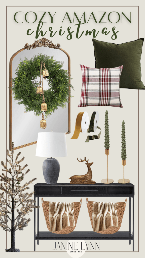 I love a moody, cozy Christmas. For the holidays, I want my house to feel like I should have a fire going at all times with some warm hot cocoa. This color palette is perfect for providing that cozy warm feeling during the holidays. All of these items can easily be found on Amazon. Click the links below!